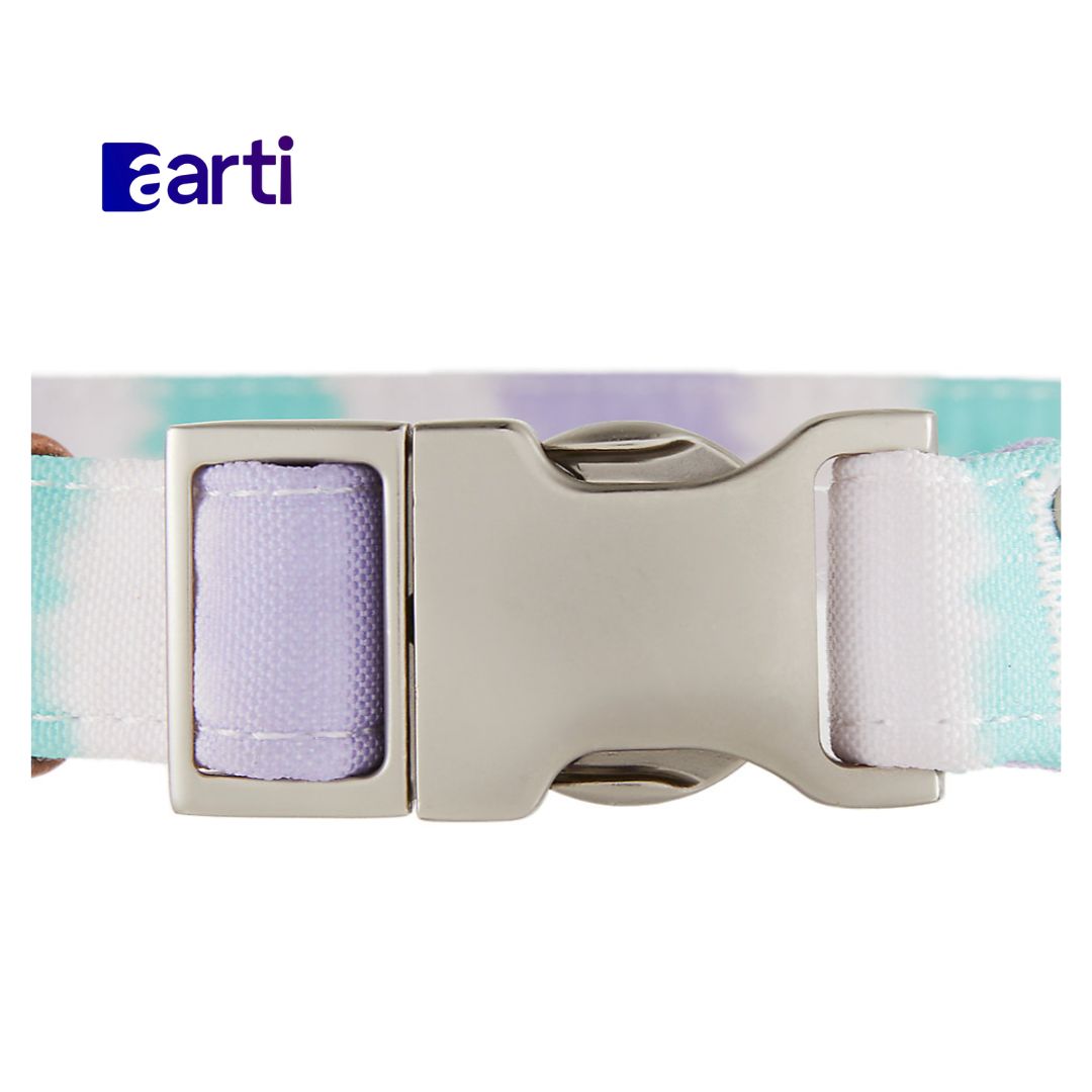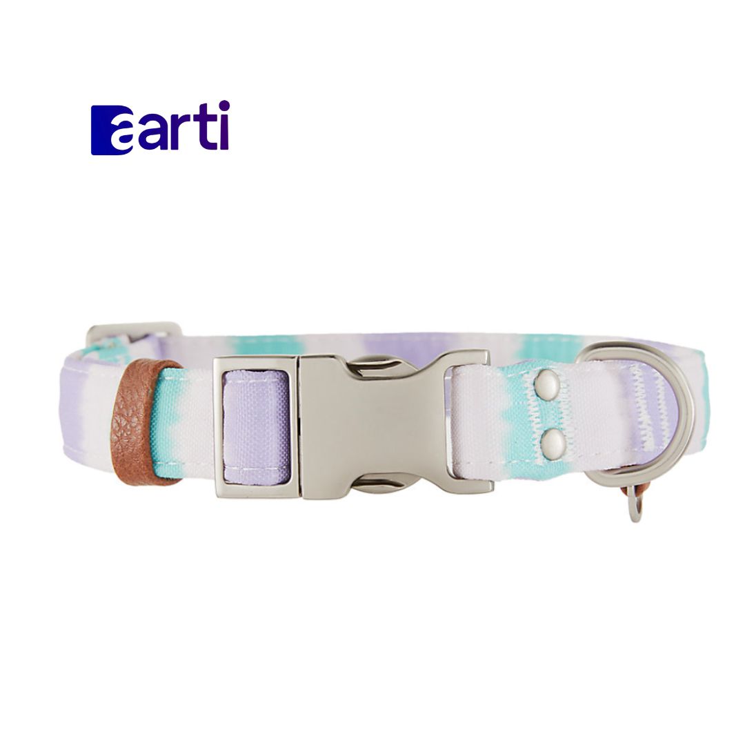 Collar para perro de lona a rayas verde azulado y morado de Top Paw® Talla M