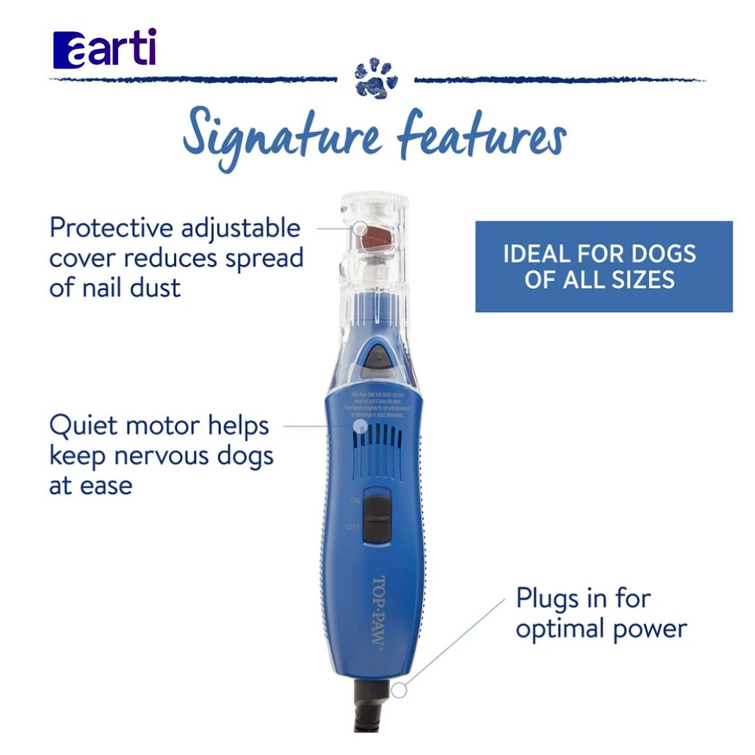 Mantenga las uñas de su perro con el mejor aspecto con este molinillo de uñas Top Paw. El cuidado de las uñas de tu perro es muy importante. El mantenimiento regular ayuda a prevenir problemas de salud, como la artritis, que puede ser causada por la presión constante que las uñas demasiado grandes ejercen sobre los nudillos del perro cuando camina. Sólo en PetSmart.