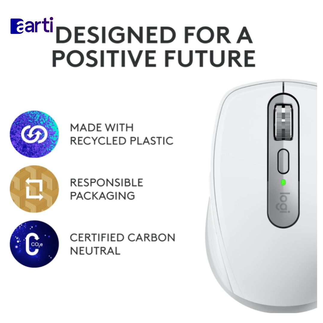 Fabricado con plástico reciclado: las piezas de plástico en MX Anywhere 3S incluyen plástico reciclado certificado post-consumo – 78% para grafito, 61% para gris pálido y rosa (10)