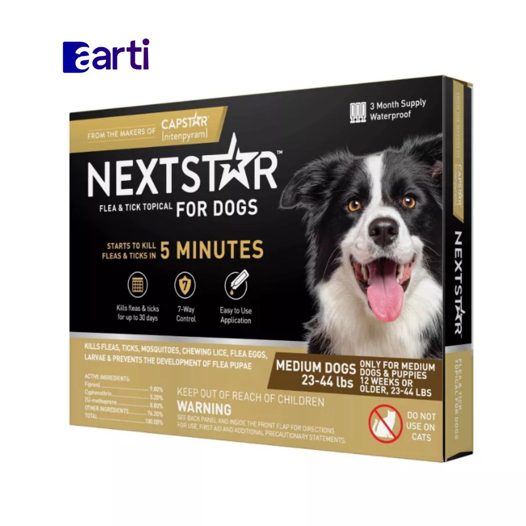 NEXTSTAR Flea & Tick Topical for Dogs proporciona un control eficaz de pulgas y garrapatas en perros durante 30 días con una sola aplicación. Este tópico impermeable de acción rápida mata pulgas, garrapatas, mosquitos, piojos masticadores, huevos de pulgas, larvas de pulgas y previene el desarrollo de pupas de pulgas.