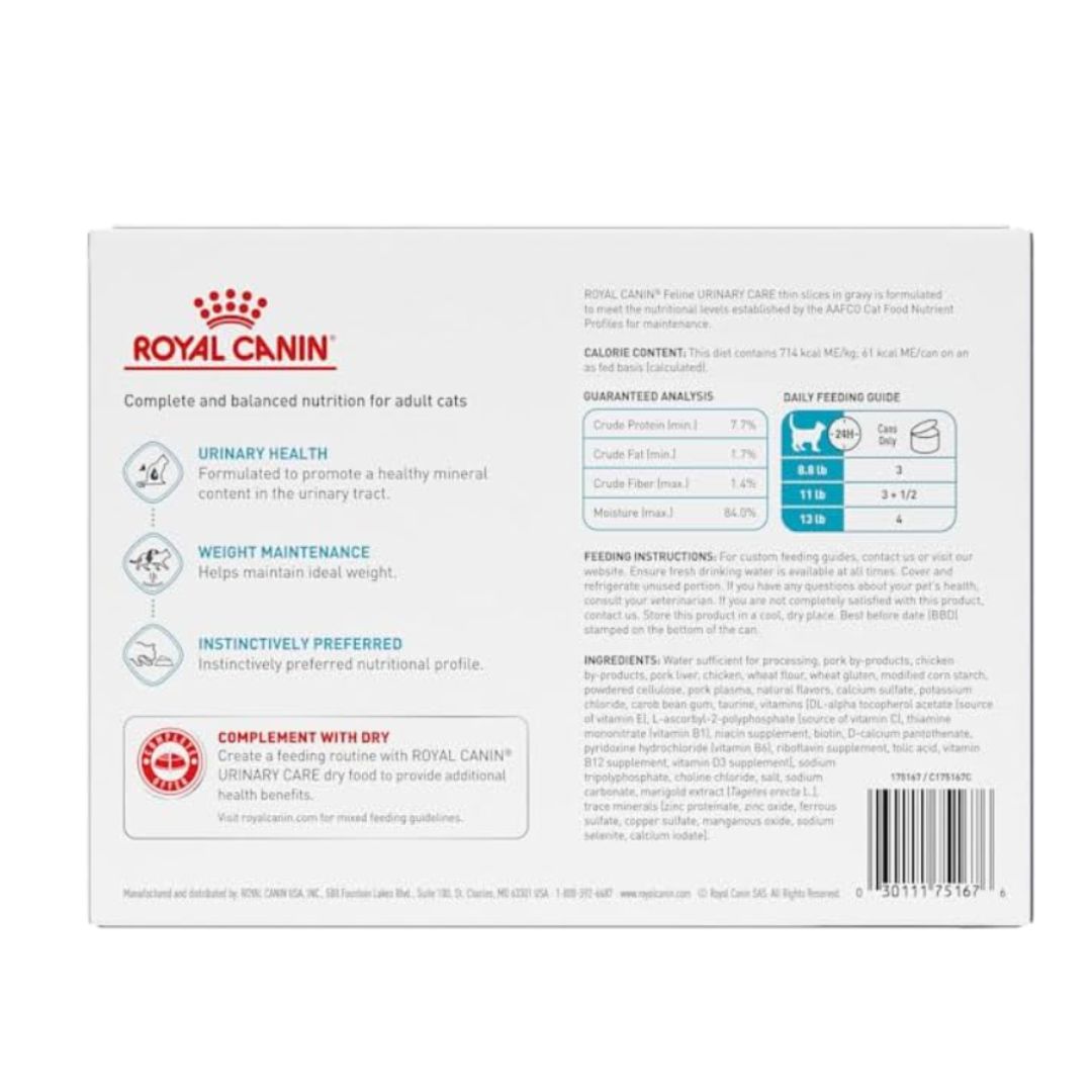 Royal Canin Feline Urinary Care – Alimento húmedo para gatos en rodajas finas en salsa de 3 onzas, paquete múltiple de 12 unidades