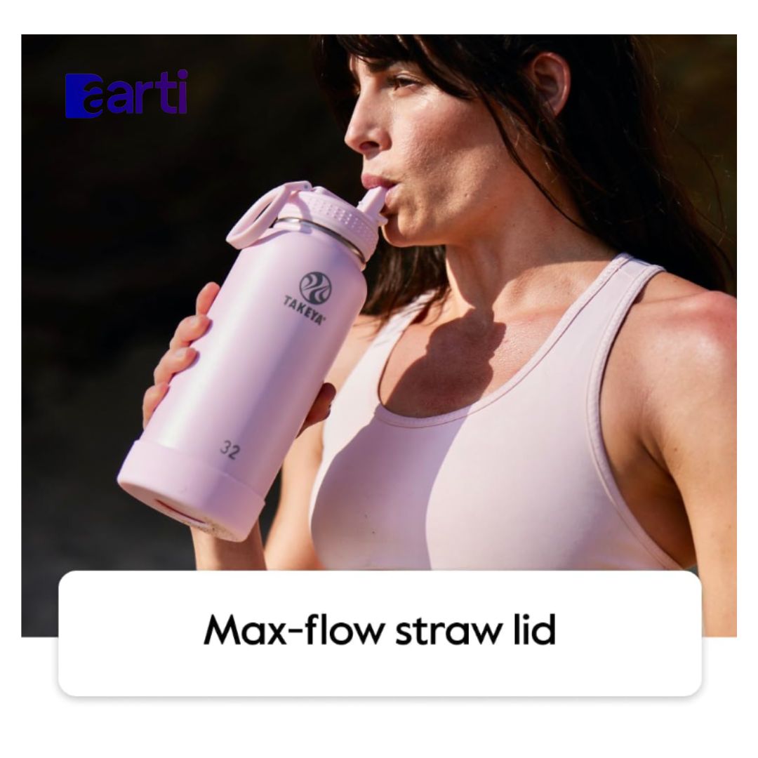 Takeya Actives – Botella de agua de acero inoxidable aislada al vacío de 32 onzas con tapa con popote