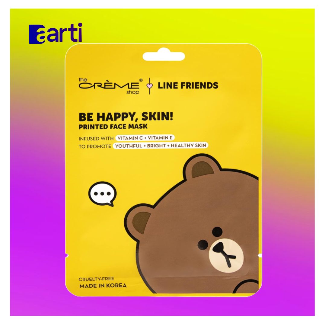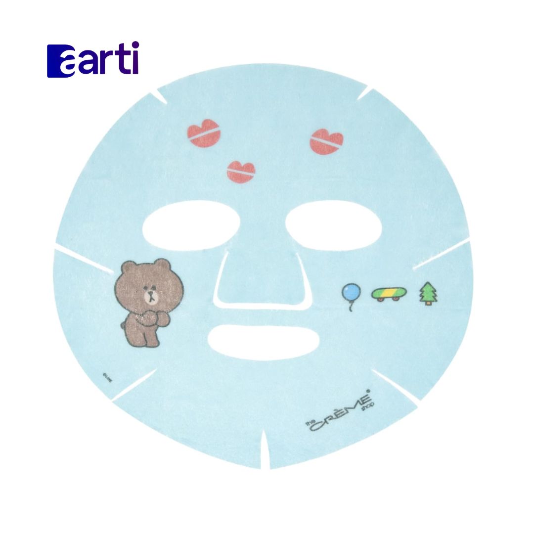 The Crème Shop LINE FRIENDS Be Happy, Skin! Mascarilla de hoja de esencia estampada marrón | Vitamina C + vitamina E